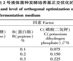 摘要 以猴头菌株猴杰2号母种为材料,研究其液体菌种最佳发酵条件,为其大规模栽培生产提供参考。采用单因子试验结合正交优化试验,以发酵所得菌丝球平均干重为衡量指标,并对所有平行数据进行SPSS方差分析,研究猴杰2号菌株液体发酵的最佳碳源、氮源、...