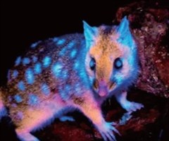 在紫外线照射下,一头东袋鼬的毛发上显露出荧光斑点。东袋鼬的这种荧光斑点仅在紫外线照射下才呈现,日光下它们的毛皮呈浅褐色,其上有白色斑点。 除东袋鼬外,袋熊等有袋类动物也具备这种荧光效应。据科学家推测,这种荧光效应或许可以帮助夜行性动物在黑暗...